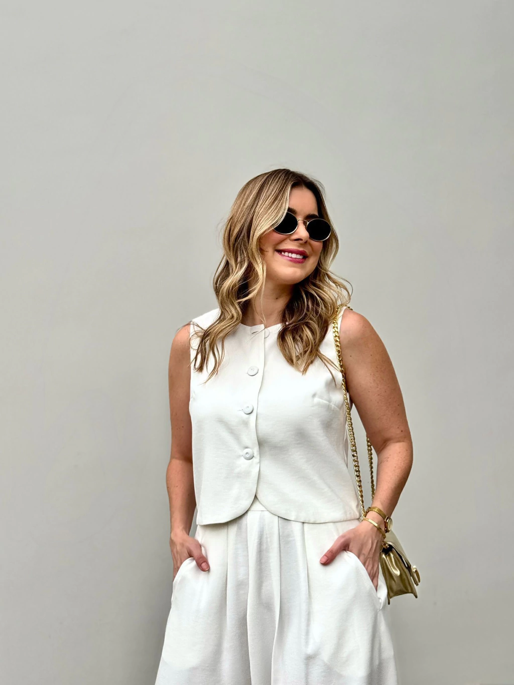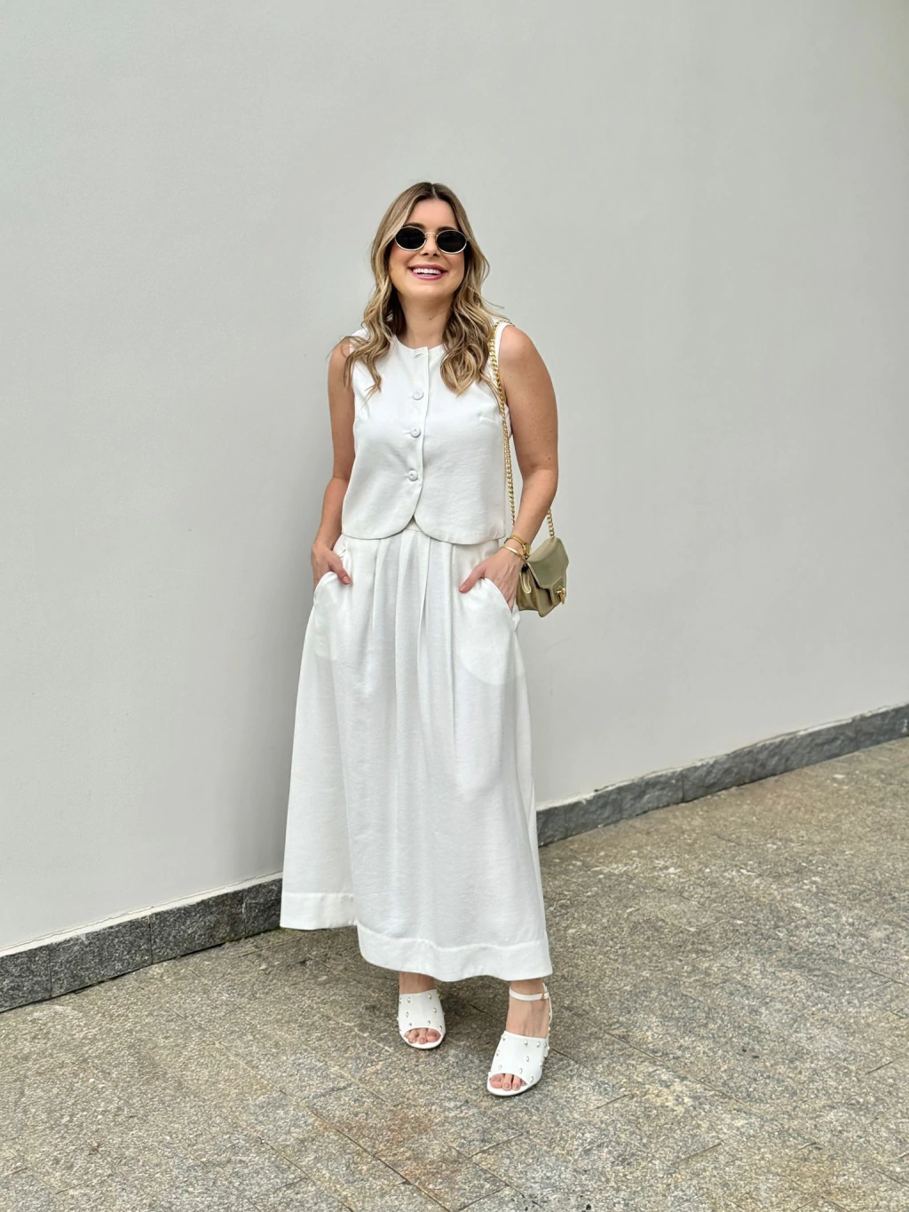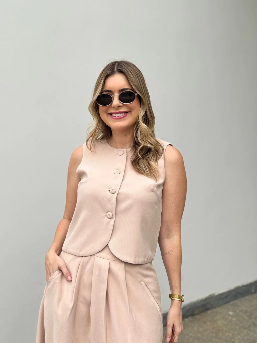 O Colete Alice é a expressão do estilo minimalista com um toque de elegância atemporal. Sua modelagem levemente estruturada valoriza o corpo com sutileza, enquanto o abotoamento frontal com botões forrados adiciona um charme sofisticado à peça.