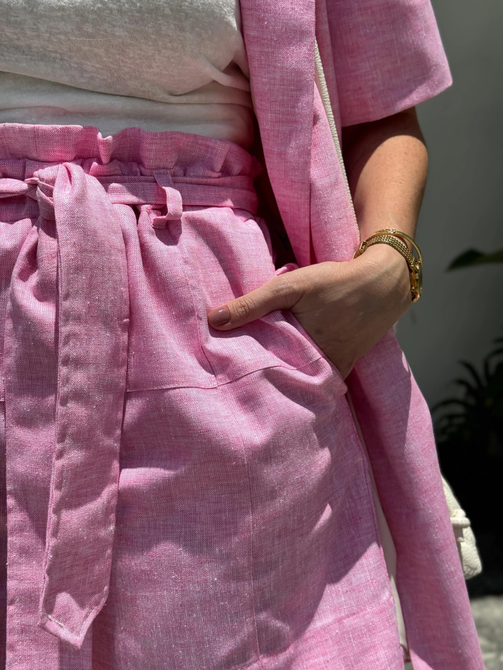 O Short Isis combina praticidade e estilo em uma modelagem que valoriza a silhueta com conforto. Com cintura alta e elástico no cõs, ele traz estrutura na medida certa, garantindo um caimento impecável e contemporâneo.