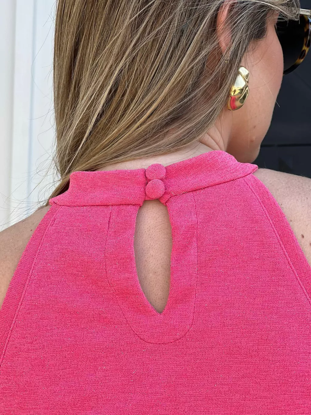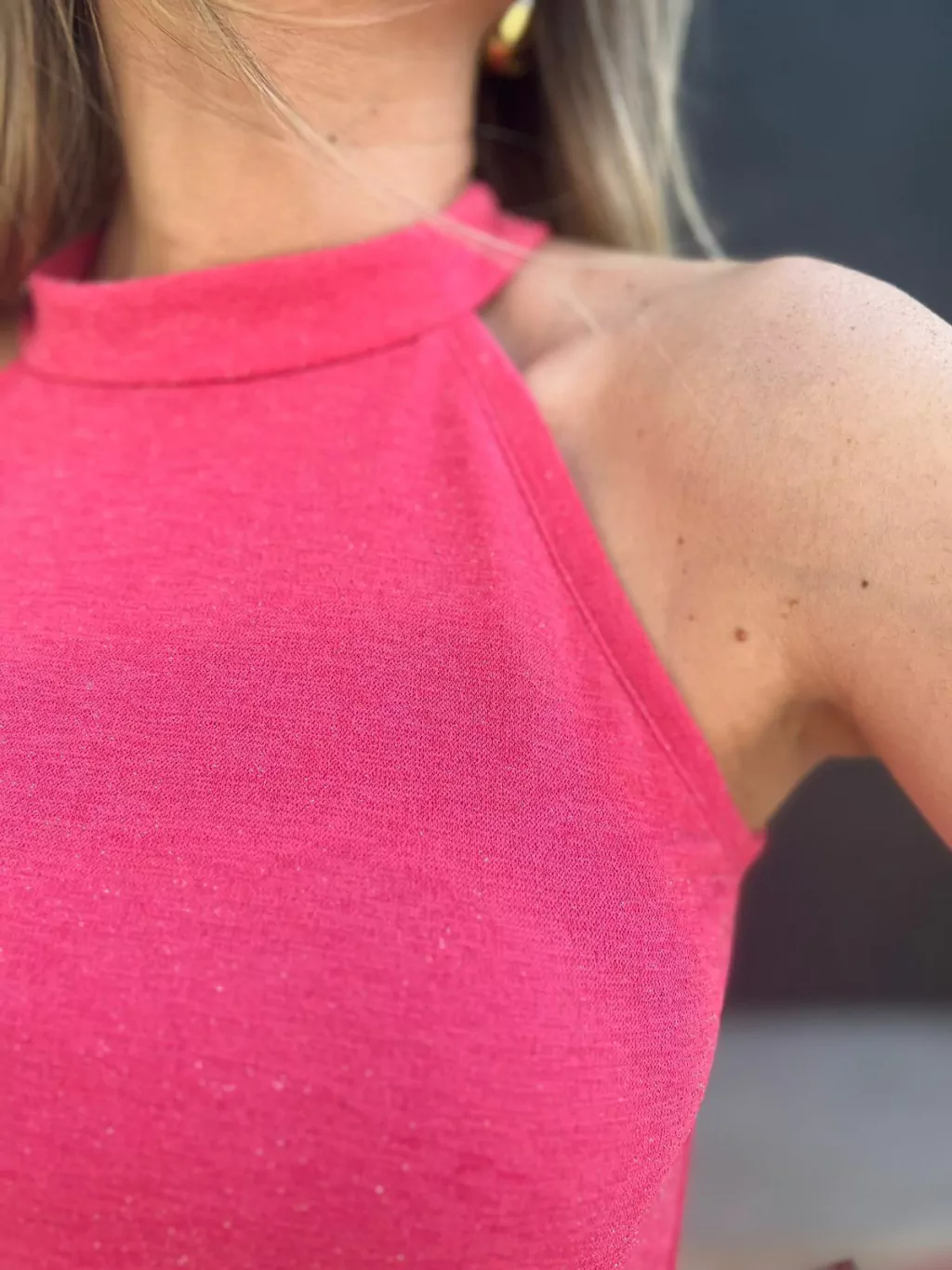 Com gola alta e ombros projetados, o decote High Neck Tank (ou frente única) é aquela blusa pra te acompanhar todo dia, nas mais variadas ocasiões.