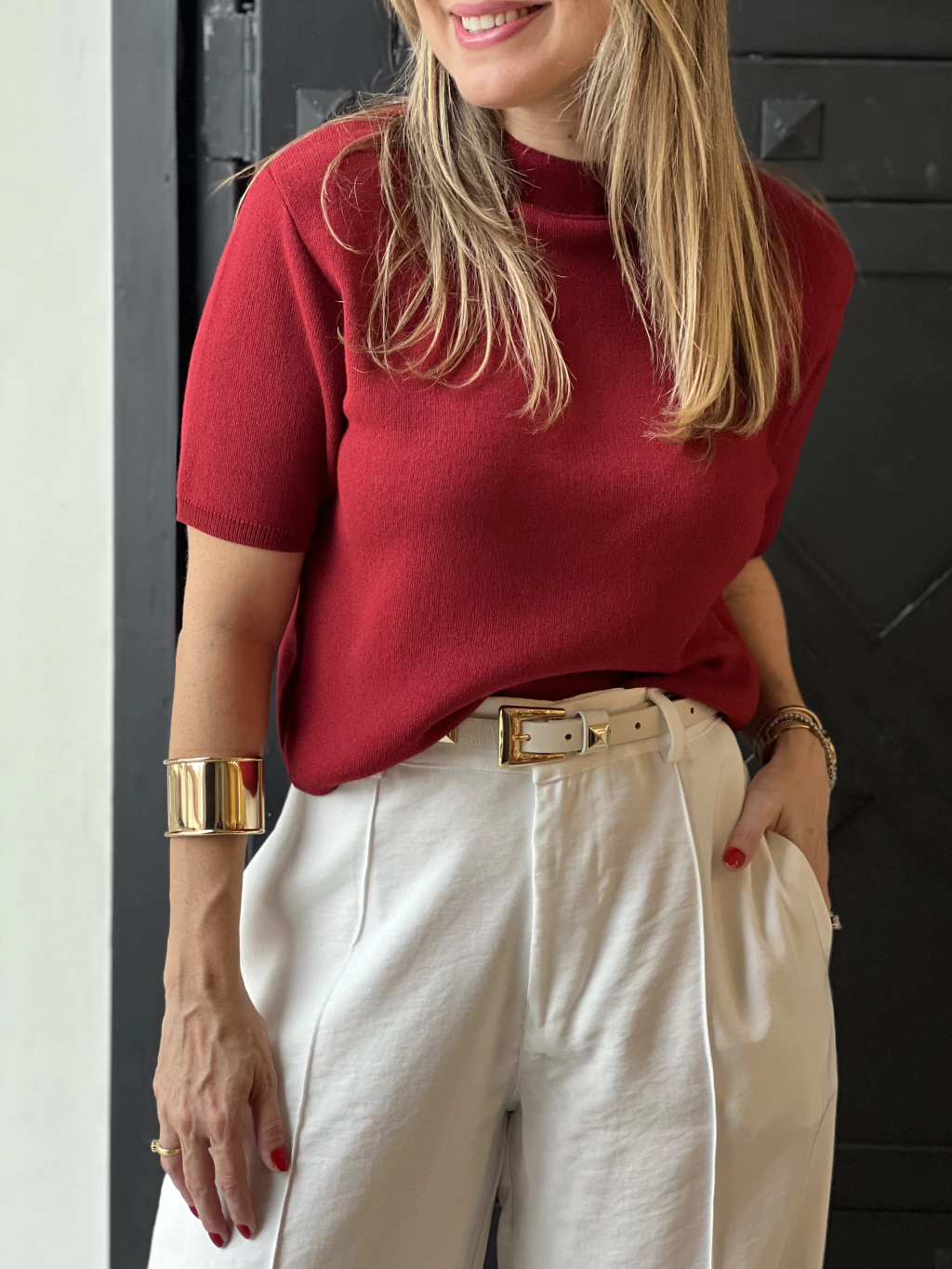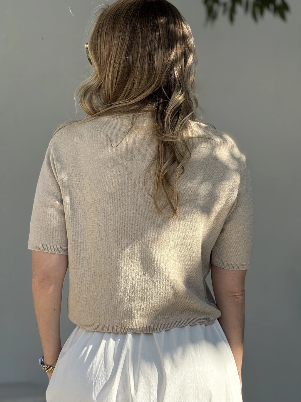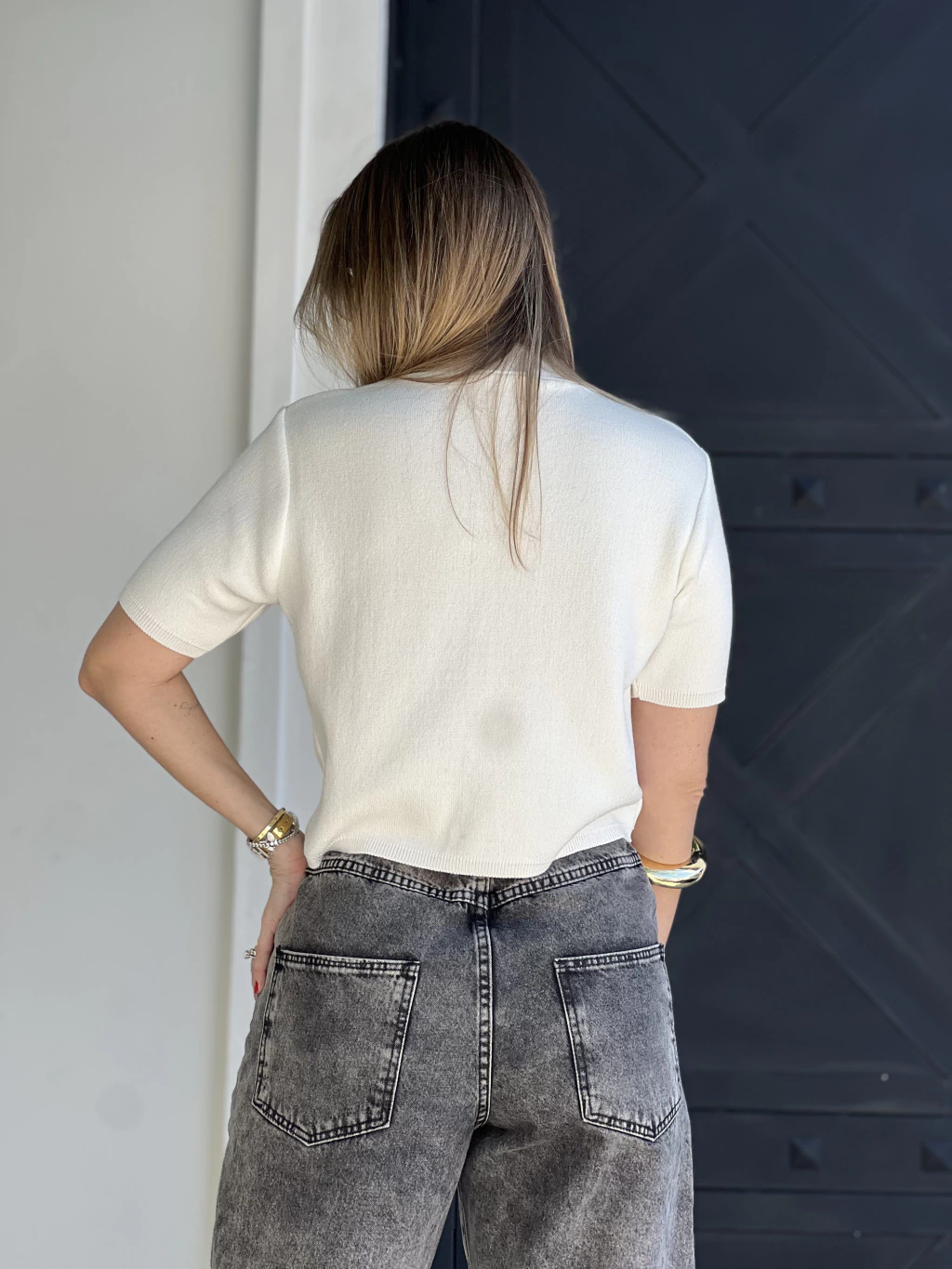 - Modelagem Elegante: Com uma modelagem mais quadrada, gola arredondada e comprimento "cropped", este modelo se destaca com suas mangas curtas levemente alongadas, conferindo um toque de elegância adicional. -