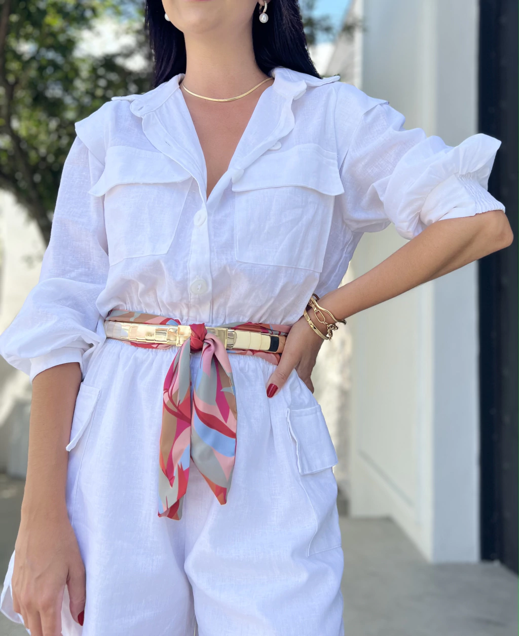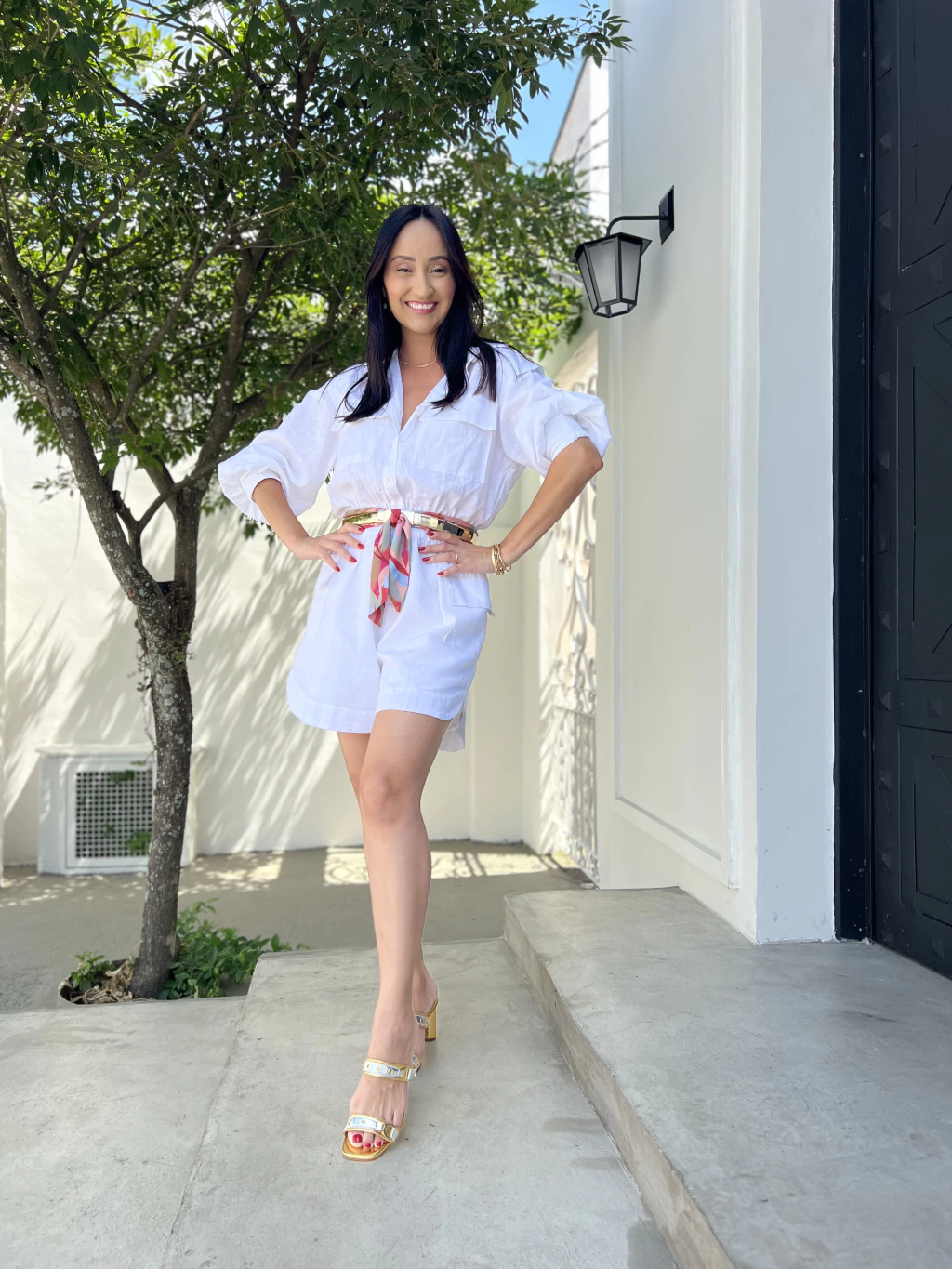 Macaquinho Eliana - Marca Exclusiva Sabrina Fernandes Versatilidade, qualidade e elegância que somente o linho proporciona. Da modelagem à confecção, todos detalhes da coleção de Cambraia de Linho foram pensados para trazer a exclusividade, versatilidade e qualidade. Maquaquinho produzido em Cabraia de Linho, um tecido natural e nobre com caimento elegante. Possui bolsos frontais e laterais, elástico na cintura, cumprimento curto e shape mais solto. Disponível nos tamanhos: PP ao GG. Confira nossa tabela de medidas para uma compra mais assertiva. Disponivel nas cores: Off Azul.