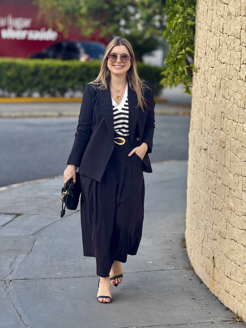 Use com o Blazer Luciana para um look monocromático elegante ou combine com peças básicas para um visual descomplicado, mas cheio de personalidade.