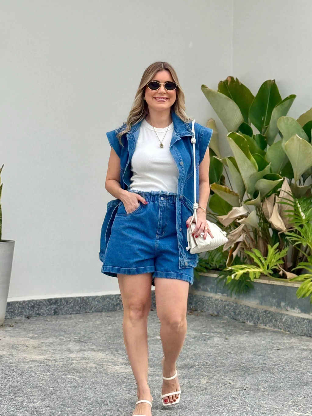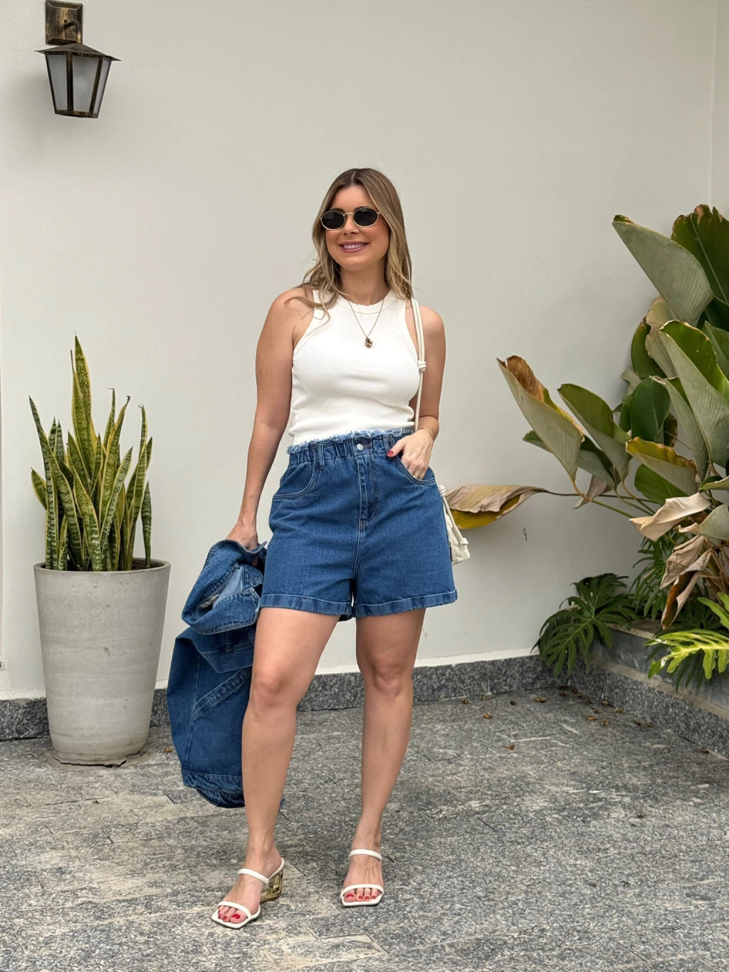 O Shorts Jeans Cléo é a combinação perfeita entre conforto e estilo casual. Com modelagem soltinha e cós alto com elástico, a peça proporciona ajuste confortável e um visual moderno, valorizando a cintura com delicadeza.