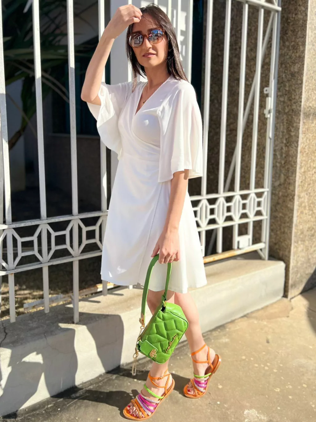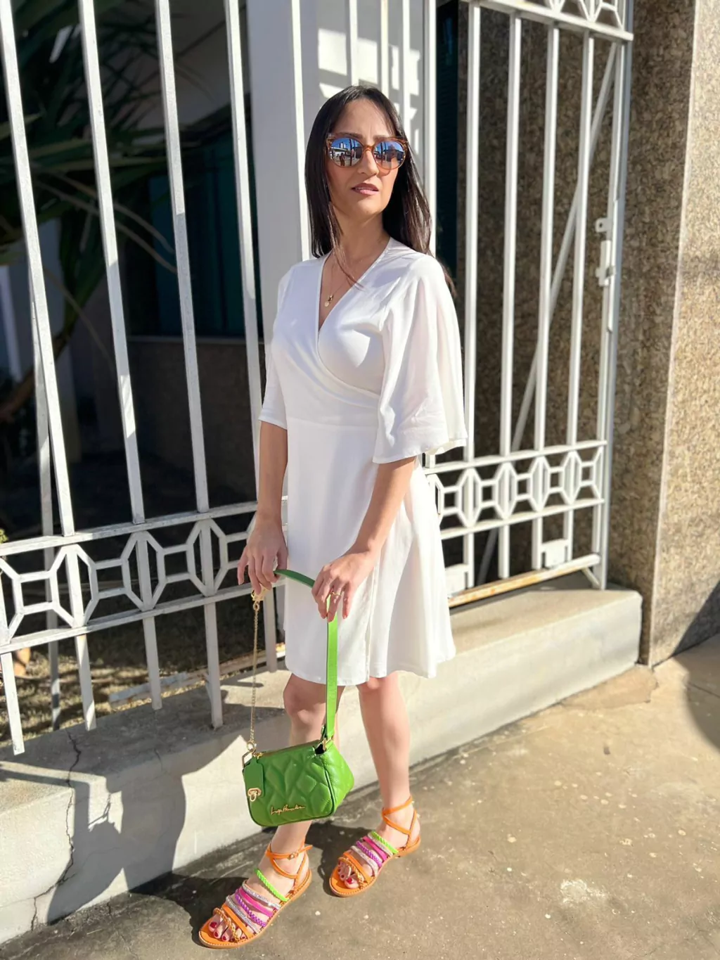 Aposte na leveza e fluidez do nosso Vestido com modelagem estilo envelope, você pode optar pelo fechamento com a própria faixa do vestido na lateral ou nas costas, super versátil e atemporal. Com decote em V e mangas curtas amplas, possui comprimento curto na medida, trazendo mais conforto para nosso dia-a-dia.