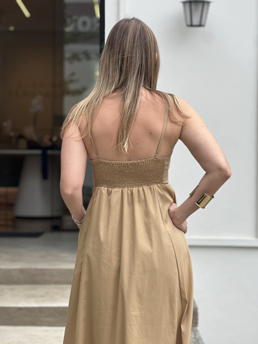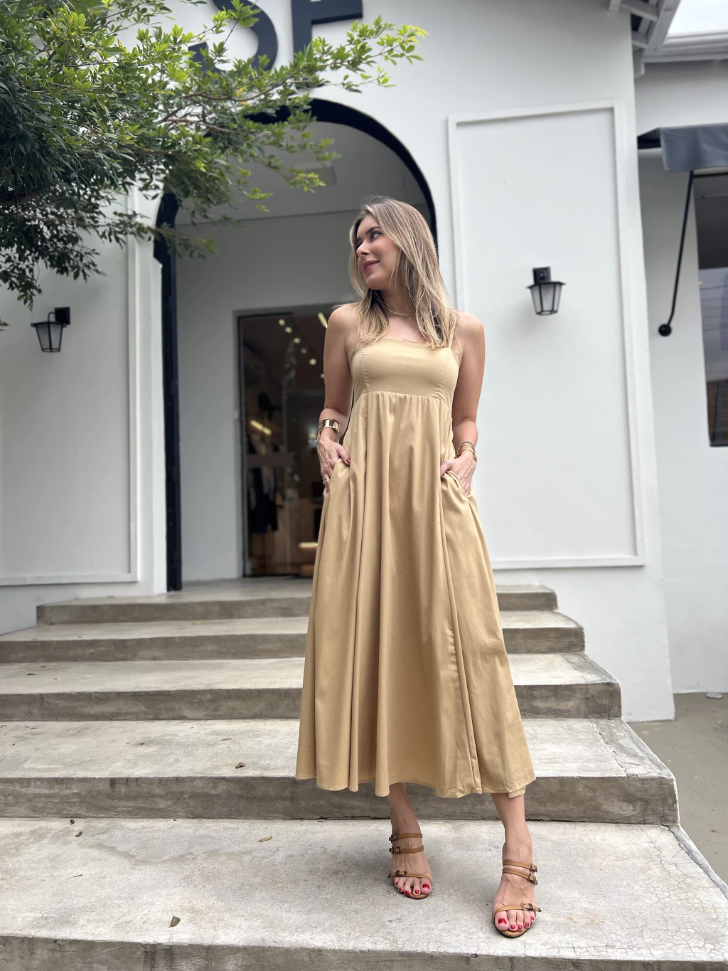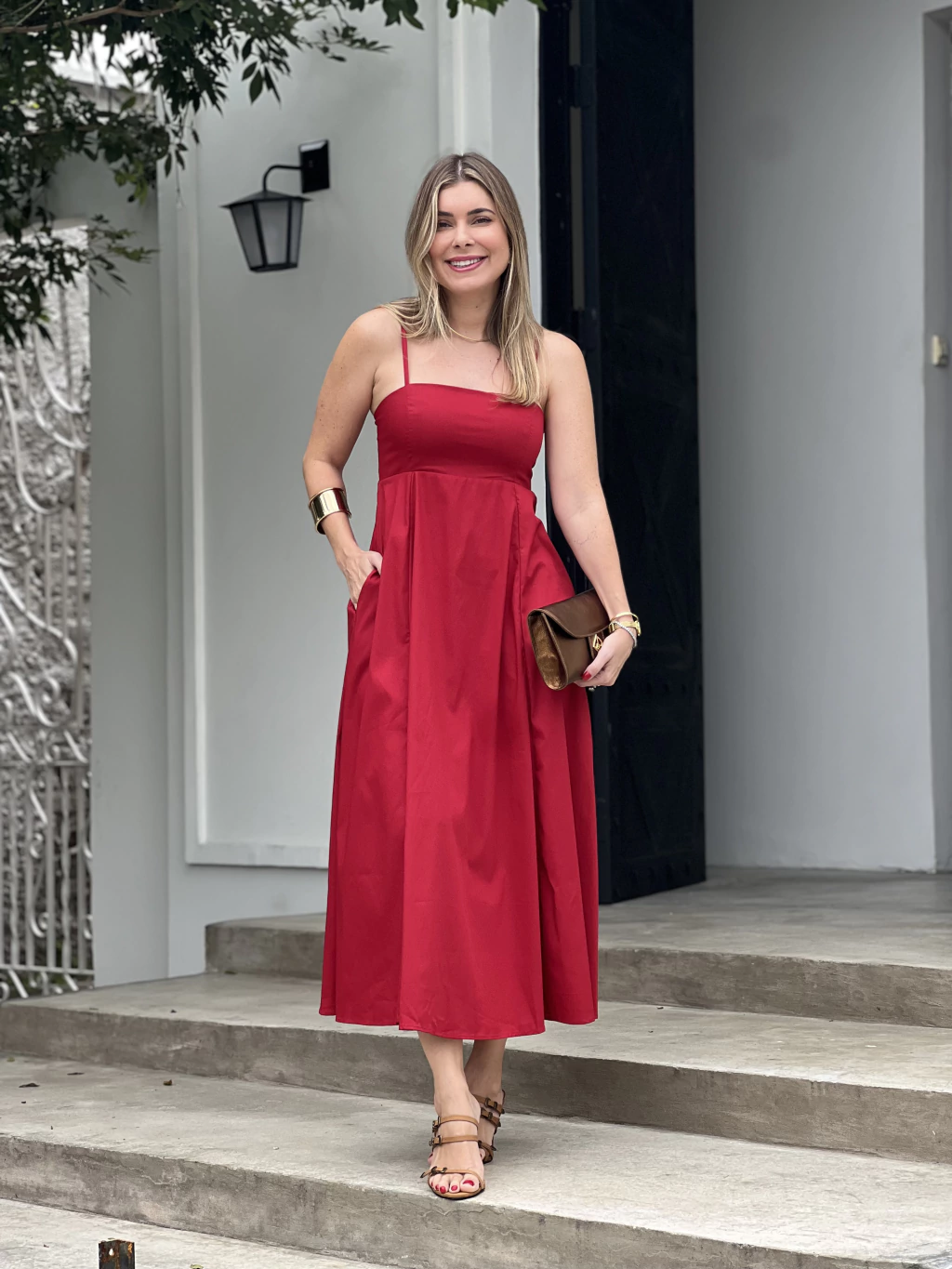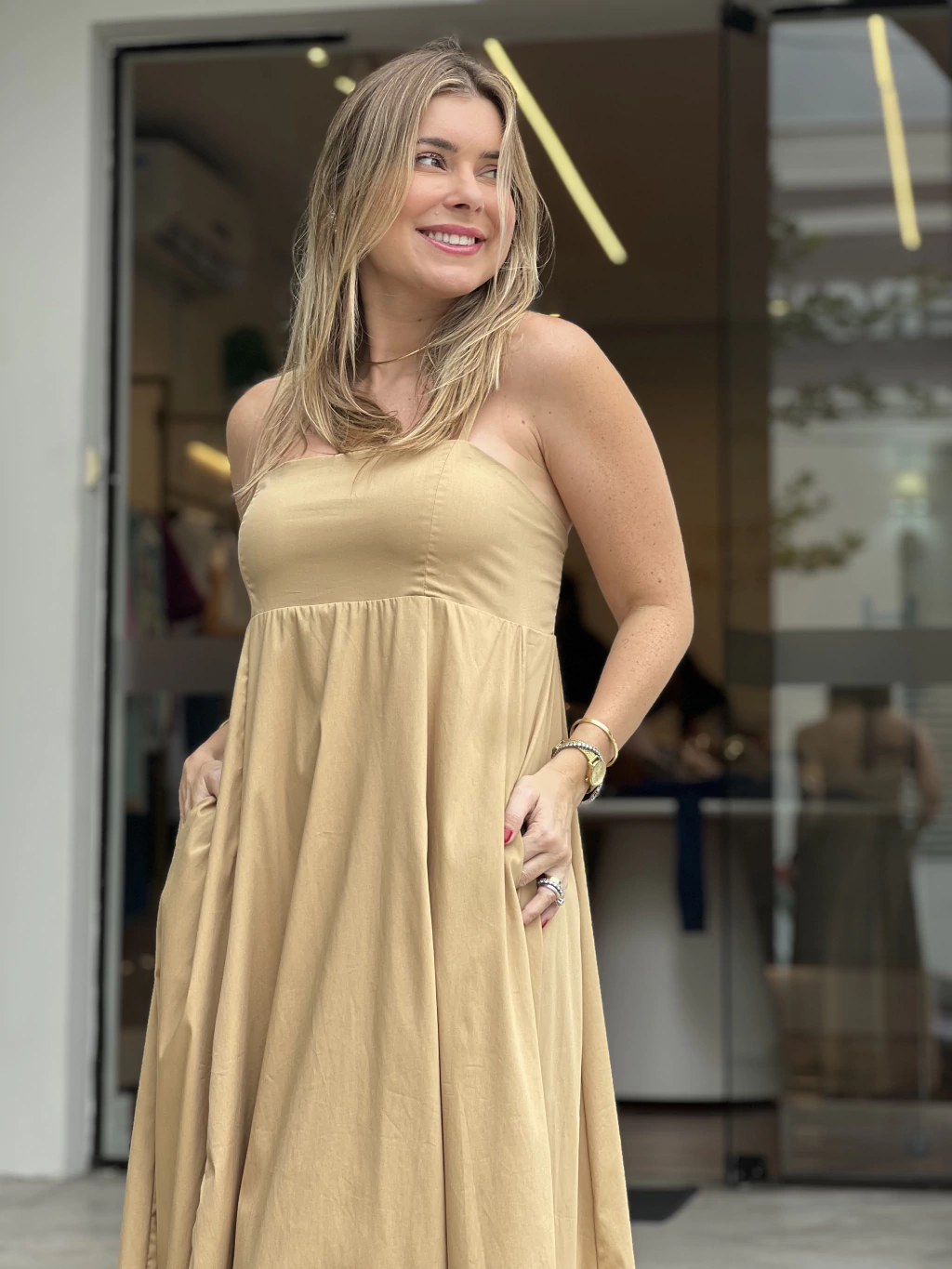 Descubra o deslumbrante Vestido Olga, uma peça chave que combina elegância e conforto. Com um decote quadrado sofisticado e alças finas ajustáveis, este vestido é ideal para realçar a sua beleza natural. Os detalhes em lastex nas costas garantem um encaixe perfeito ao busto, enquanto a saia fluida com bolsos discretos nas laterais adiciona praticidade ao seu look.