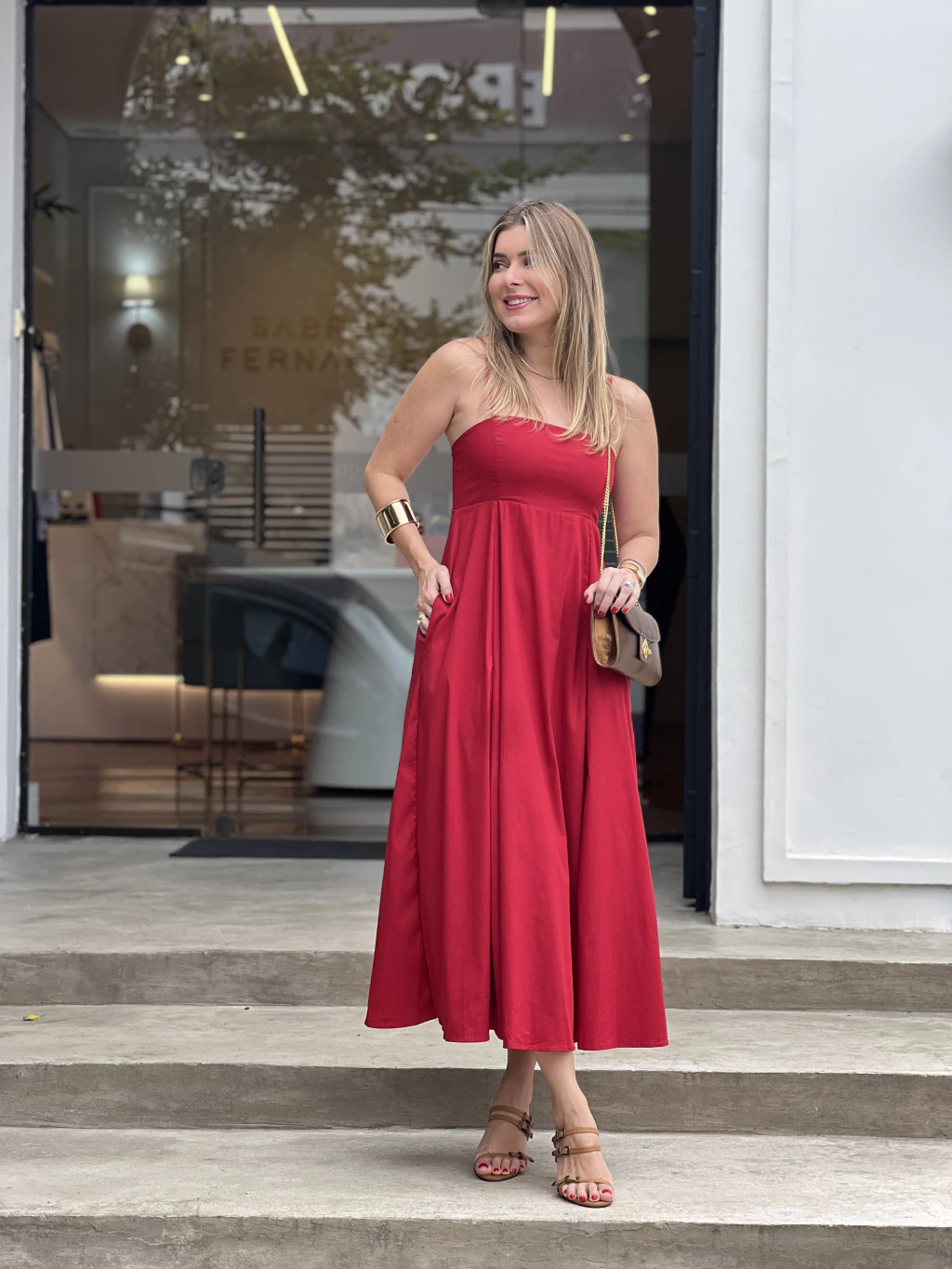 Feito em tecido de tricoline poliamida premium, o vestido Olga é completamente forrado, proporcionando uma sensação suave e confortável ao toque. Sua versatilidade permite que você o use em diversas ocasiões: combine com sandálias rasteiras para um visual casual ou com saltos para um toque de sofisticação.